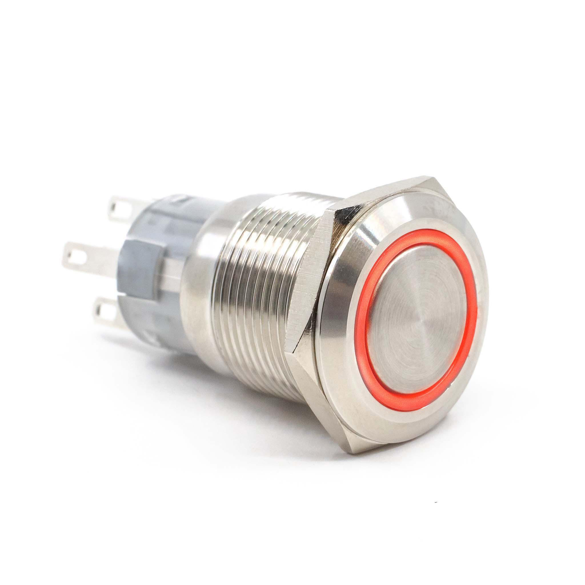 This is manufactured by E-Switch. The manufacturer part number is PV4F2B0SS-3R1. It is assigned with possible HTSUS value of 8536.50.9065. The product is rohs3 compliant. The product offers long-lasting services of 50,000 cycles. Moreover, it has solder, quick connect - 0.110" (2.8mm) terminal style. 24 v of DC voltage rating. The product has -20°c ~ 55°c operating temperature range. It also has a circular - 19.00mm dia dimensional features. It comes in anti-vandal, illuminated configuration. In addition, it is reach unaffected. It is supplied with led, blue/green/red illumination. It is shipped in tray package . It is designed as a on-mom switching function. Its typical moisture sensitivity level is 1 (unlimited). The actuator marking of the product corelates with no marking. It has an integral spdt circuit. It has a long 13 weeks standard lead time. Additionally, the product's output is 2a (dc). It is IP rated with ip65 - dust tight, water resistant. The product is available in panel mount, front configuration. The product pv4, lamb, is a highly preferred choice for users. It is made from silver. The product carries round, button, flush actuator. The nominal illumination voltage of the product is 1.8, 2.8, 2.8 vdc. The product is designated with the ear99 code number.
