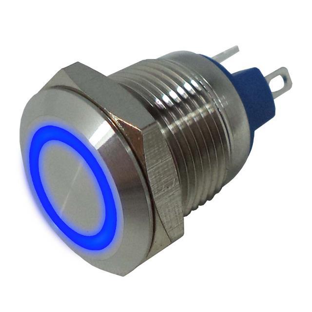 This is manufactured by Adam Tech. The manufacturer part number is SW-PB7-01LB42BFRB12VM. It is assigned with possible HTSUS value of 8536.50.9031. The product is rohs3 compliant. The product offers long-lasting services of 200,000 cycles. Moreover, it has solder lug terminal style. 36 v of DC voltage rating. The product has -25°c ~ 55°c operating temperature range. It also has a circular - 12.00mm dia dimensional features. It comes in anti-vandal, illuminated configuration. In addition, it is reach unaffected. It is supplied with led, blue illumination. It is shipped in box package . It is designed as a off-mom switching function. Its typical moisture sensitivity level is not applicable. The actuator marking of the product corelates with no marking. It has an integral spst-no circuit. It has a long 14 weeks standard lead time. Additionally, the product's output is 2a (dc). It is IP rated with ip67 - dust tight, waterproof. The product is available in panel mount, front configuration. The product sw, is a highly preferred choice for users. It is made from silver. The product carries round, button actuator. The nominal illumination voltage of the product is 12 vac/dc. Moreover, it corresponds to sw-pb7, a base product number of the product. The product is designated with the ear99 code number.