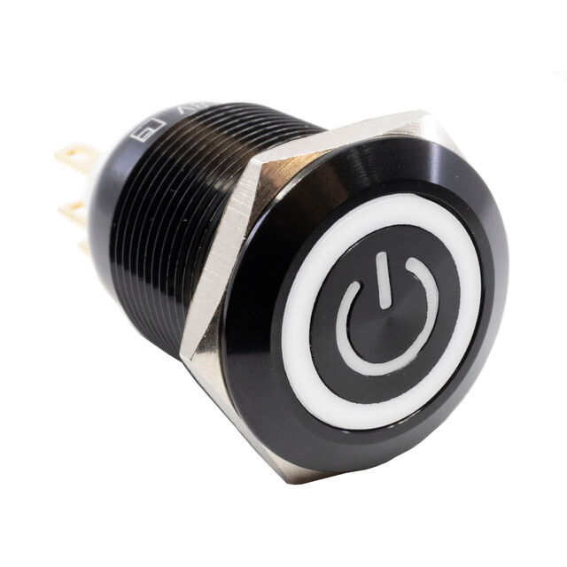 This is manufactured by E-Switch. The manufacturer part number is PV4F2Y011G-301-M26. It is assigned with possible HTSUS value of 8536.50.9031. The product is rohs3 compliant. The product offers long-lasting services of 50,000 cycles. Moreover, it has solder, quick connect - 0.110" (2.8mm) terminal style. 24 v of DC voltage rating. The product has -20°c ~ 55°c operating temperature range. It also has a circular - 19.00mm dia dimensional features. The product also provide mechanical stability with 1,000,000 cycles. It comes in anti-vandal, illuminated configuration. It is made from black. It is supplied with led, white illumination. It is designed as a on-mom, off-mom switching function. Its typical moisture sensitivity level is 1 (unlimited). It has an integral dpst-no/nc circuit. It has a long 14 weeks standard lead time. Additionally, the product's output is 2a (dc). It is IP rated with ip65 - dust tight, water resistant. The product is available in panel mount, front configuration. The product pv4, lamb, is a highly preferred choice for users. In addition, bulk is the available packaging type of the product. The product carries round, button, flush actuator. The nominal illumination voltage of the product is 2.8 vdc. The product is designated with the ear99 code number.