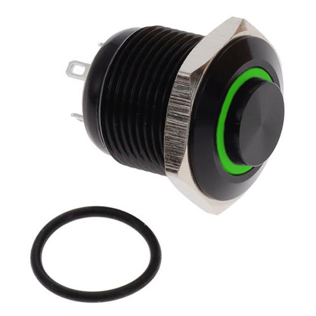 This is manufactured by E-Switch. The manufacturer part number is PV6H24011-331. It is assigned with possible HTSUS value of 8536.50.9031. The product is rohs3 compliant. Moreover, it has solder lug terminal style. 48 v of DC voltage rating. The product has -20°c ~ 55°c operating temperature range. It also has a circular - 16.00mm dia dimensional features. It comes in anti-vandal, illuminated configuration. It is supplied with led, green illumination. It is designed as a off-mom switching function. Its typical moisture sensitivity level is 1 (unlimited). It has an integral spst-no circuit. It has a long 13 weeks standard lead time. Additionally, the product's output is 2a (dc). It is IP rated with ip65 - dust tight, water resistant. The product is available in panel mount, front configuration. The product pv6, lamb, is a highly preferred choice for users. In addition, bulk is the available packaging type of the product. It is made from black. The product carries round, button actuator. The nominal illumination voltage of the product is 2.8 vdc. The product is designated with the ear99 code number.