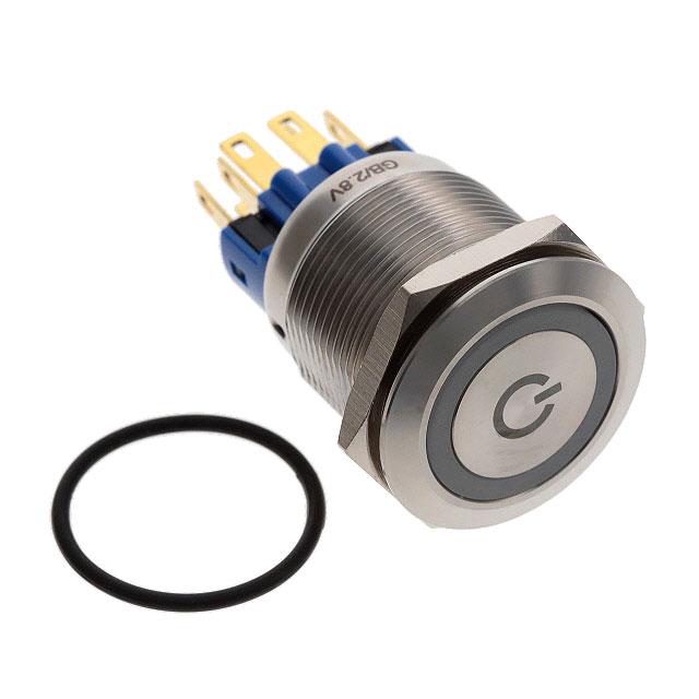 This is manufactured by E-Switch. The manufacturer part number is PV7F2T0SS-3R1-M01. It is assigned with possible HTSUS value of 8536.50.9033. The product is rohs3 compliant. The product offers long-lasting services of 50,000 cycles. Moreover, it has solder, quick connect - 0.110" (2.8mm) terminal style. 48 v of DC voltage rating. The product has -20°c ~ 55°c operating temperature range. It also has a circular - 22.00mm dia dimensional features. The product also provide mechanical stability with 1,000,000 cycles. It comes in anti-vandal, illuminated configuration. In addition, it is reach unaffected. It is supplied with led, blue/green/red illumination. It is shipped in bulk package . It is designed as a on-off, off-on switching function. Its typical moisture sensitivity level is 1 (unlimited). It has an integral dpst-no/nc circuit. It has a long 13 weeks standard lead time. Additionally, the product's output is 2a (dc). It is IP rated with ip65 - dust tight, water resistant. The product is available in panel mount, front configuration. The product pv7, lamb, is a highly preferred choice for users. It is made from silver. The product carries round, button, flush actuator. The nominal illumination voltage of the product is 1.8, 2.8, 2.8 vdc. The product is designated with the ear99 code number.