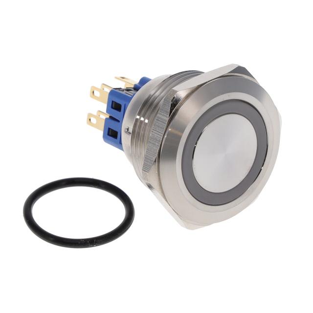 This is manufactured by E-Switch. The manufacturer part number is PV9F2V0SS-3K1. It is assigned with possible HTSUS value of 8536.50.9031. The product is rohs3 compliant. The product offers long-lasting services of 50,000 cycles. Moreover, it has solder, quick connect - 0.110" (2.8mm) terminal style. 48 v of DC voltage rating. The product has -20°c ~ 55°c operating temperature range. It also has a circular - 28.00mm dia dimensional features. The product also provide mechanical stability with 1,000,000 cycles. It comes in anti-vandal, illuminated configuration. It is supplied with led, green/orange illumination. It is shipped in bulk package . It is designed as a on-mom, off-mom switching function. Its typical moisture sensitivity level is 1 (unlimited). It has an integral 4pst-2no/2nc circuit. It has a long 13 weeks standard lead time. Additionally, the product's output is 2a (dc). It is IP rated with ip66 - dust tight, water resistant. The product is available in panel mount, front configuration. The product pv9, lamb, is a highly preferred choice for users. It is made from silver. The product carries round, button, flush actuator. The nominal illumination voltage of the product is 1.8, 2.8 vdc. The product is designated with the ear99 code number.