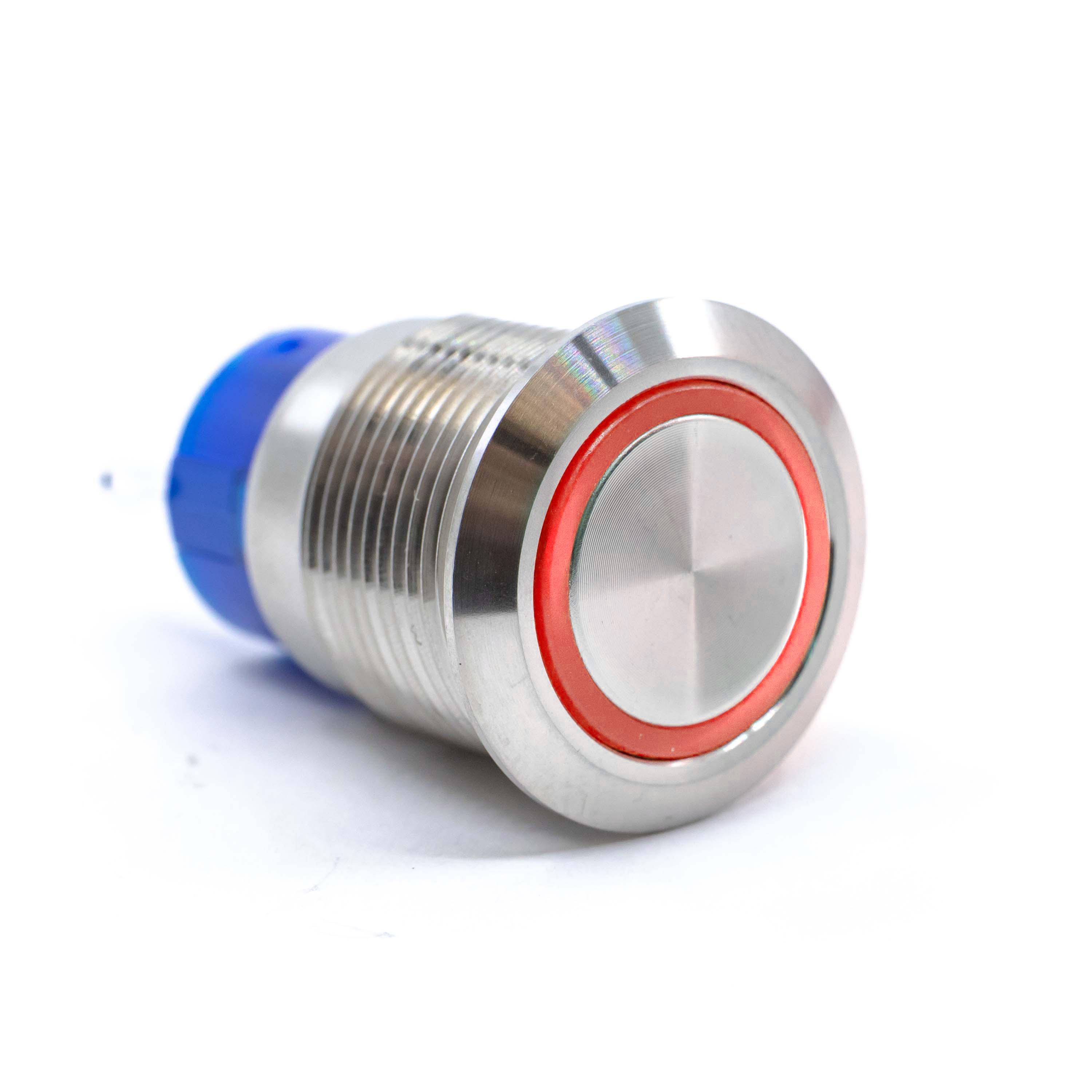 This is manufactured by E-Switch. The manufacturer part number is ULV4F2BSS314. It is assigned with possible HTSUS value of 8536.50.9031. The product is rohs3 compliant. The product offers long-lasting services of 50,000 cycles. Moreover, it has solder, quick connect - 0.110" (2.8mm) terminal style. The product has -20°c ~ 55°c operating temperature range. It also has a circular - 19.20mm dia dimensional features. The product also provide mechanical stability with 1,000,000 cycles. It comes in anti-vandal, illuminated configuration. The product exhibits 125 v of AC voltage rating. It is supplied with led, red illumination. It is designed as a on-mom switching function. Its typical moisture sensitivity level is 1 (unlimited). It has an integral spdt circuit. It has a long 12 weeks standard lead time. Additionally, the product's output is 3a (ac). It is IP rated with ip67 - dust tight, waterproof. The product is available in panel mount, front configuration. The product ulv4, is a highly preferred choice for users. In addition, bulk is the available packaging type of the product. It is made from silver. The product carries round, button, flush actuator. The nominal illumination voltage of the product is 12 vdc. The product is designated with the ear99 code number.
