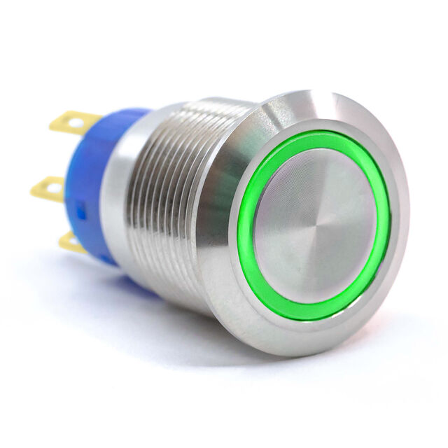 This is manufactured by E-Switch. The manufacturer part number is ULV4F2GSSG335. It is assigned with possible HTSUS value of 8536.50.9033. The product is rohs3 compliant. The product offers long-lasting services of 50,000 cycles. Moreover, it has solder, quick connect - 0.110" (2.8mm) terminal style. The product has -20°c ~ 55°c operating temperature range. It also has a circular - 19.20mm dia dimensional features. The product also provide mechanical stability with 500,000 cycles. It comes in anti-vandal, illuminated configuration. It is made from silver. The product exhibits 125 v of AC voltage rating. It is supplied with led, green illumination. It is designed as a on-on switching function. Its typical moisture sensitivity level is 1 (unlimited). It has an integral dpdt circuit. It has a long 12 weeks standard lead time. Additionally, the product's output is 3a (ac). It is IP rated with ip67 - dust tight, waterproof. The product is available in panel mount, front configuration. The product ulv4, is a highly preferred choice for users. In addition, bulk is the available packaging type of the product. The product carries round, button, flush actuator. The nominal illumination voltage of the product is 24 vdc. The product is designated with the ear99 code number.