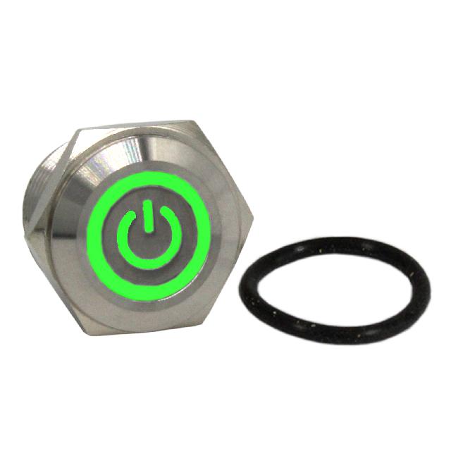 This is manufactured by CIT Relay and Switch. The manufacturer part number is BH16NGSBGW. The product is rohs3 compliant. Moreover, it has solder lug terminal style. The product has -25°c ~ 55°c operating temperature range. It also has a circular - 16.00mm dia dimensional features. It comes in anti-vandal, illuminated configuration. In addition, tray is the available packaging type of the product. The product exhibits 125 v of AC voltage rating. It is supplied with led, green/white illumination. It is designed as a off-mom switching function. Its typical moisture sensitivity level is 1 (unlimited). It has an integral spst-no circuit. 36 v of DC voltage rating. It has a long 9 weeks standard lead time. Additionally, the product's output is 1a (ac), 2a (dc). It is IP rated with ip67 - dust tight, waterproof. The product is available in panel mount, front configuration. The product bh, is a highly preferred choice for users. It is made from silver. The product carries round, button, flush actuator. The nominal illumination voltage of the product is 3.0, 3.3 vdc.
