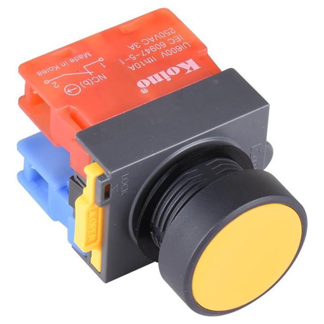 This is manufactured by KOINO. The manufacturer part number is NS22-PM-Y1A01B. It is assigned with possible HTSUS value of 8536.50.2000. The product is rohs non-compliant. The product offers long-lasting services of 500,000 cycles. Moreover, it has screw terminal terminal style. 250 v of DC voltage rating. The product has -25°c ~ 70°c operating temperature range. It also has a circular - 22.30mm dia dimensional features. The product also provide mechanical stability with 1,000,000 cycles. It comes in standard configuration. It is made from yellow. The product exhibits 250 v of AC voltage rating. In addition, it is vendor undefined. It is designed as a on-mom, off-mom switching function. It has an integral dpst-no/nc circuit. Additionally, the product's output is 3a (ac), 270ma (dc). It is IP rated with ip65 - dust tight, water resistant. The product is available in panel mount, front configuration. The product ns22, is a highly preferred choice for users. In addition, bulk is the available packaging type of the product. The product carries round, button, flush actuator. The product is designated with the ear99 code number.