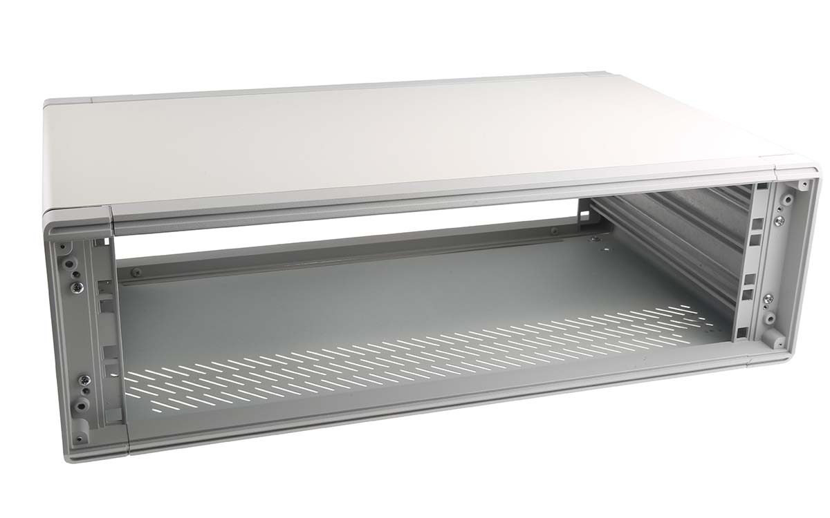 This is Rack Mount Case 3U manufactured by RS Pro. The manufacturer part number is 132-4408. It includes 3u rack units . The product complies with all safety standards, such as rohs. Its external case is made using steel material . It has a decent grey colour. It has an external depth of 322mm.