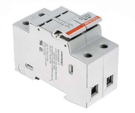 This is 30A Rail Mount Fuse Holder for 10 x 38mm Fuse 690V ac manufactured by Mersen. The manufacturer part number is US102. It has equipped with 2 poles. A fuse with a 10 x 38mm size. The product has a current rating of 30a. Moreover, the product has a nominal 690v ac voltage rating.