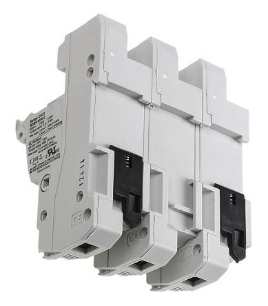 This is 100 (UL/cURuS) A 125 (IEC) A Rail Mount Fuse Holder With Indicator for 22 x 58mm Fuse manufactured by Cooper Bussmann. The manufacturer part number is CH223B. The product has a current rating of 100a. Moreover, the product has a nominal 690v ac voltage rating. A fuse with a 22 x 58mm size. The casing is constructed from highly stable pet material. It has equipped with 3 poles.