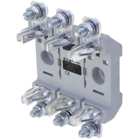 This is Triple Integral Base NH00 CE manufactured by Cooper Bussmann. The manufacturer part number is TD00-DI. The product complies with all safety standards, such as iec 60269-1 and 2, vde 0636-1 and 2. Moreover, the product has a nominal 690v ac voltage rating. The product nh base, is a highly preferred choice for users. A fuse with a nh00 size. The casing is constructed from highly stable pbt material. It has din rail type rail . It has equipped with 3 poles. The terminal is a screw type.