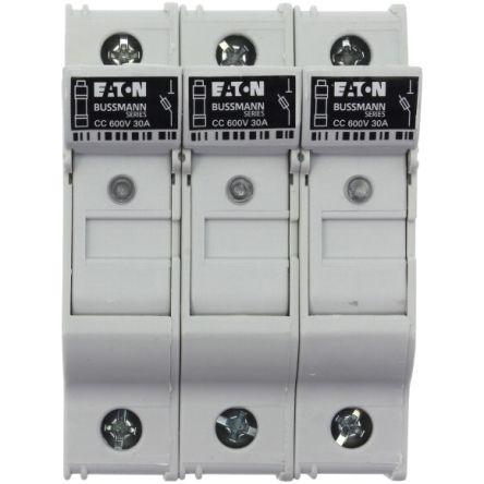 This is 3P 10X38 MFH 30A 600V Class CC-indicator manufactured by Cooper Bussmann. The manufacturer part number is CHCC3DIU. It is compatible with 10 x 38 mm size fuses . The product has a current rating of 30a. The product complies with all safety standards, such as ccc, csa, ul. Indicator included yes . Moreover, the product has a nominal 600v voltage rating. The product ch, is a highly preferred choice for users. A fuse with a 10 x 38mm size. It has a compatible fuse of 10mm in diameter . It has din rail type rail . It is compatible with 38mm length fuse . It has equipped with 2 poles. The terminal is a screw type.