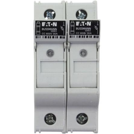 This is 2P 10X38MFH 30A 600V Class CC-indicator manufactured by Cooper Bussmann. The manufacturer part number is CHCC2DIU. It is compatible with 10 x 38 mm size fuses . The product has a current rating of 30a. The product complies with all safety standards, such as ccc, csa, ul. Indicator included yes . Moreover, the product has a nominal 600v voltage rating. The product ch, is a highly preferred choice for users. A fuse with a 10 x 38mm size. It has a compatible fuse of 10mm in diameter . It has din rail type rail . It is compatible with 38mm length fuse . It has equipped with 2 poles. The terminal is a screw type.