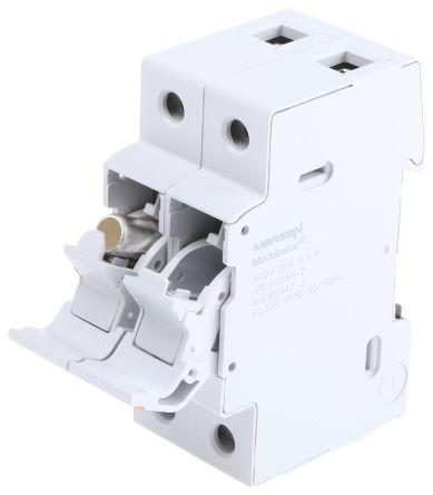 This is 25A Rail Mount Fuse Holder for 8 x 31.5mm Fuse 500V ac manufactured by Mersen. The manufacturer part number is Y305001. The product has a current rating of 25a. Moreover, the product has a nominal 500v ac voltage rating. A fuse with a 8 x 31.5mm size. The casing is constructed from highly stable thermoplastic material. It has equipped with 1+n poles.