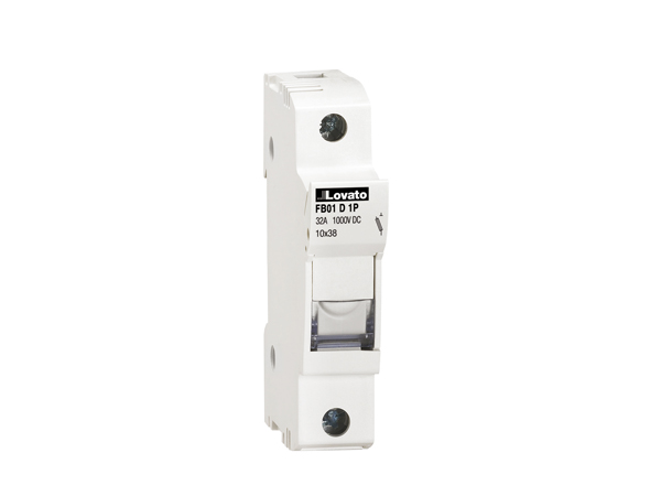 This is 32A Rail Mount Fuse Holder No 1P 1kV dc manufactured by Lovato. The manufacturer part number is FB01D1P. The product has a current rating of 32a. Indicator included no . Moreover, the product has a nominal 690v ac voltage rating. It has din 35 mm type rail . A fuse with a 10 x 38mm size. It features fb range. Moreover, it has a/an rail mount type fuse holder . Its international protection rating is ip20 . It has equipped with 1p poles.