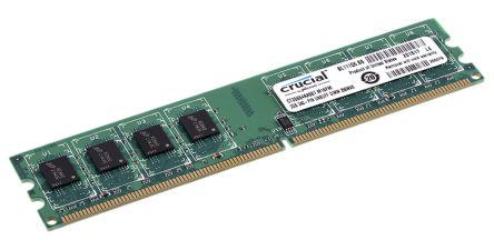 This is 2 GB 667MHz DDR2 DIMM Memory Module manufactured by Crucial. The manufacturer part number is CT25664AA667. It has 5 CAS latency . The module has the capacity of 2 gb. It includes a/an dimm memory socket . It has a/an pc2-5300 type module . Additionally, it has a standard ddr2 class memory . It is for a desktop . It carries a 1.8v of voltage. Additionally, it has 240 included pins . It has a robust speed of 667mhz.