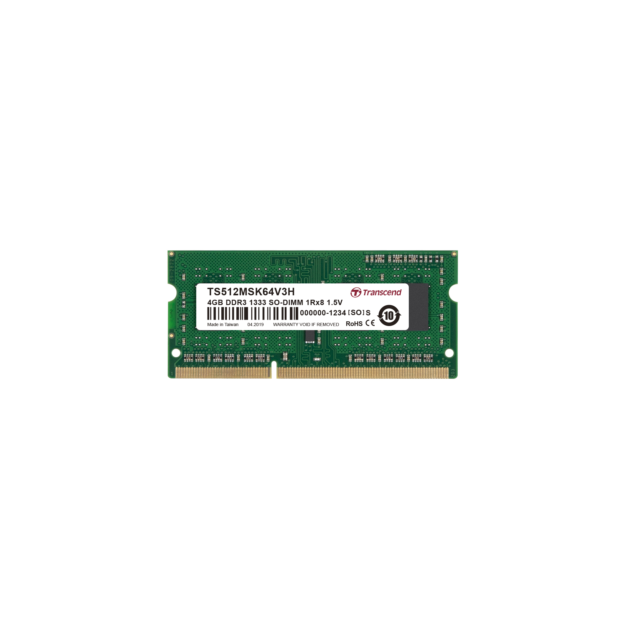 This is 4 GB DDR3 Desktop Laptop RAM 1333Mbit/s SODIMM 1.5V manufactured by Transcend. The manufacturer part number is TS512MSK64V3H. The module has the capacity of 4 gb. It includes a/an sodimm memory socket . Additionally, it has a standard ddr3 class memory . It is for a desktop, laptop . It carries a 1.5v of voltage. It has a robust speed of 1333mbit/s.