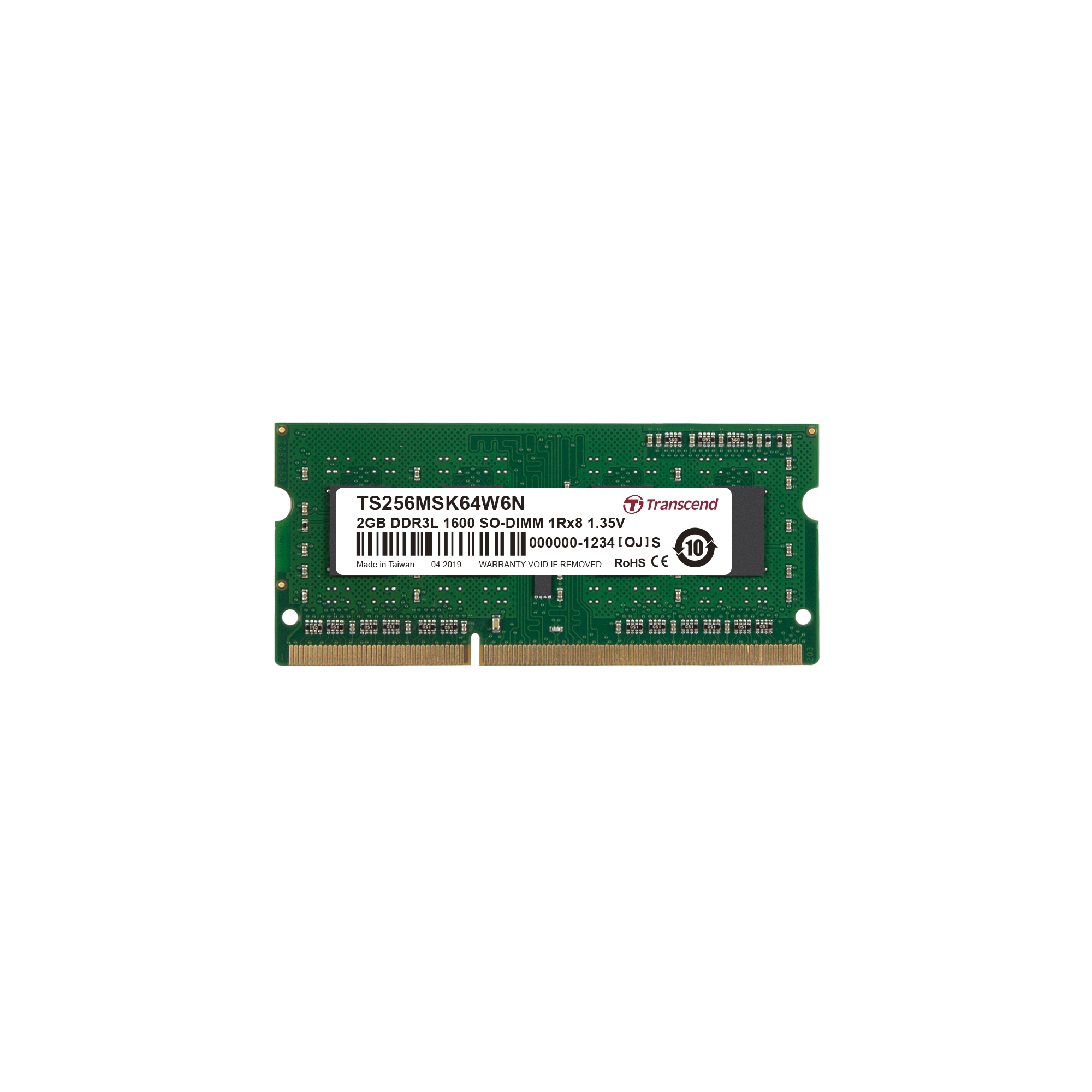 This is 2 GB DDR3L RAM 1600Mbit/s SODIMM 1.35V manufactured by Transcend. The manufacturer part number is TS256MSK64W6N. The module has the capacity of 2 gb. It includes a/an sodimm memory socket . Additionally, it has a standard ddr3l class memory . It carries a 1.35v of voltage. It has a robust speed of 1600mbit/s.