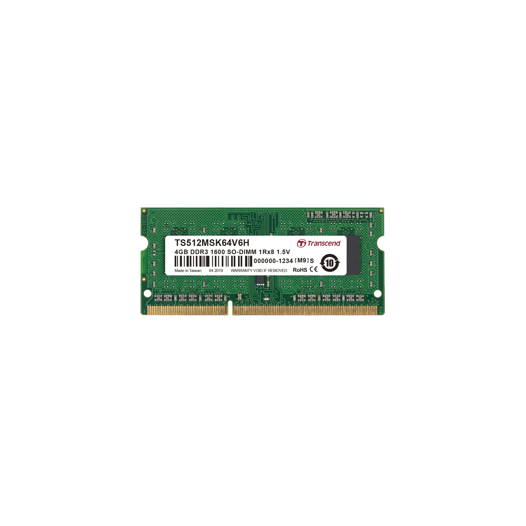 This is 4 GB DDR3 Desktop Laptop RAM 1600Mbit/s SODIMM 1.5V manufactured by Transcend. The manufacturer part number is TS512MSK64V6H. The module has the capacity of 4 gb. It includes a/an sodimm memory socket . Additionally, it has a standard ddr3 class memory . It is for a desktop, laptop . It carries a 1.5v of voltage. It has a robust speed of 1600mbit/s.