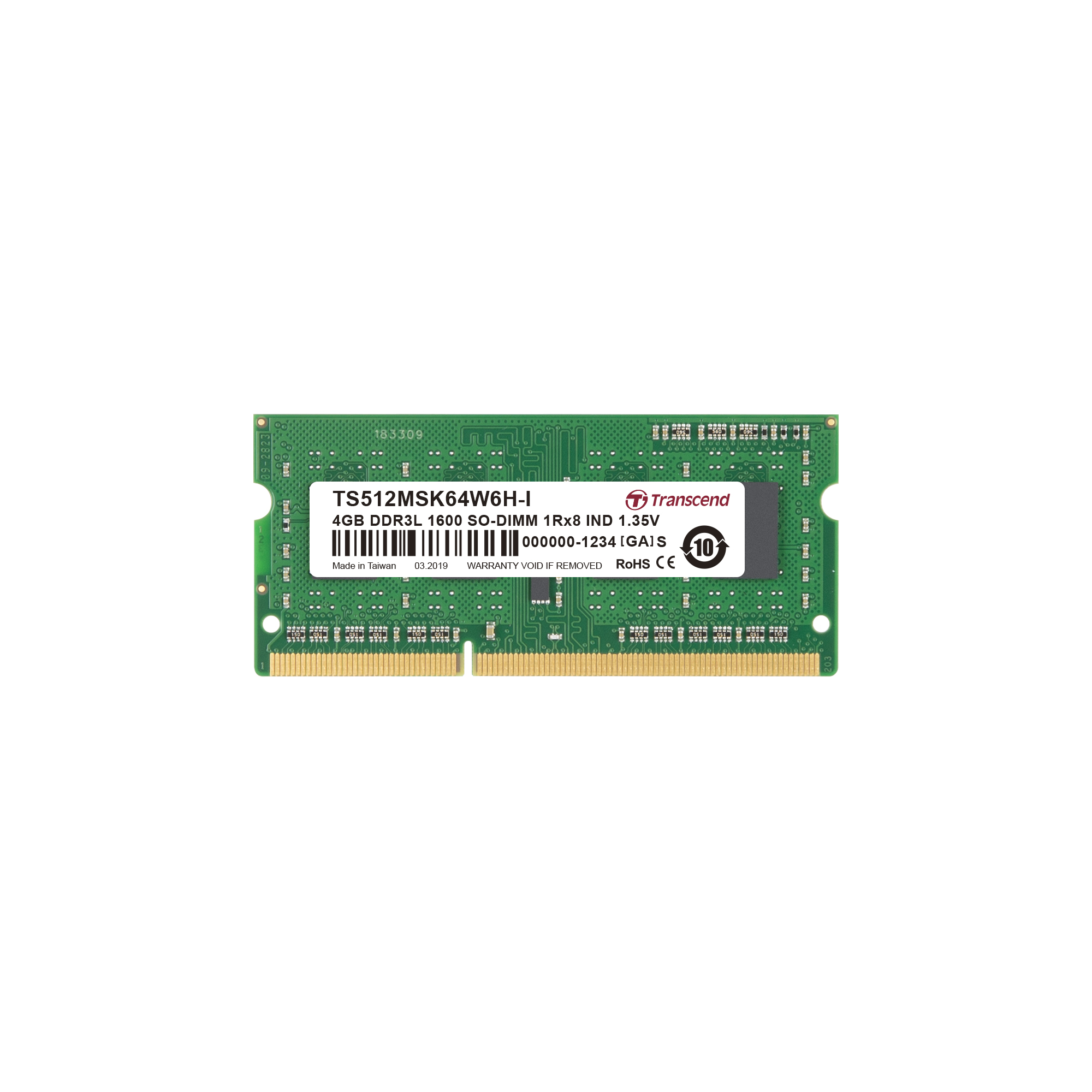 This is 4 GB DDR3L RAM 1600Mbit/s SODIMM 1.35V manufactured by Transcend. The manufacturer part number is TS512MSK64W6H-I. The module has the capacity of 4 gb. It includes a/an sodimm memory socket . It has a robust speed of 1600mbit/s. It carries a 1.35v of voltage. Additionally, it has a standard ddr3l class memory .