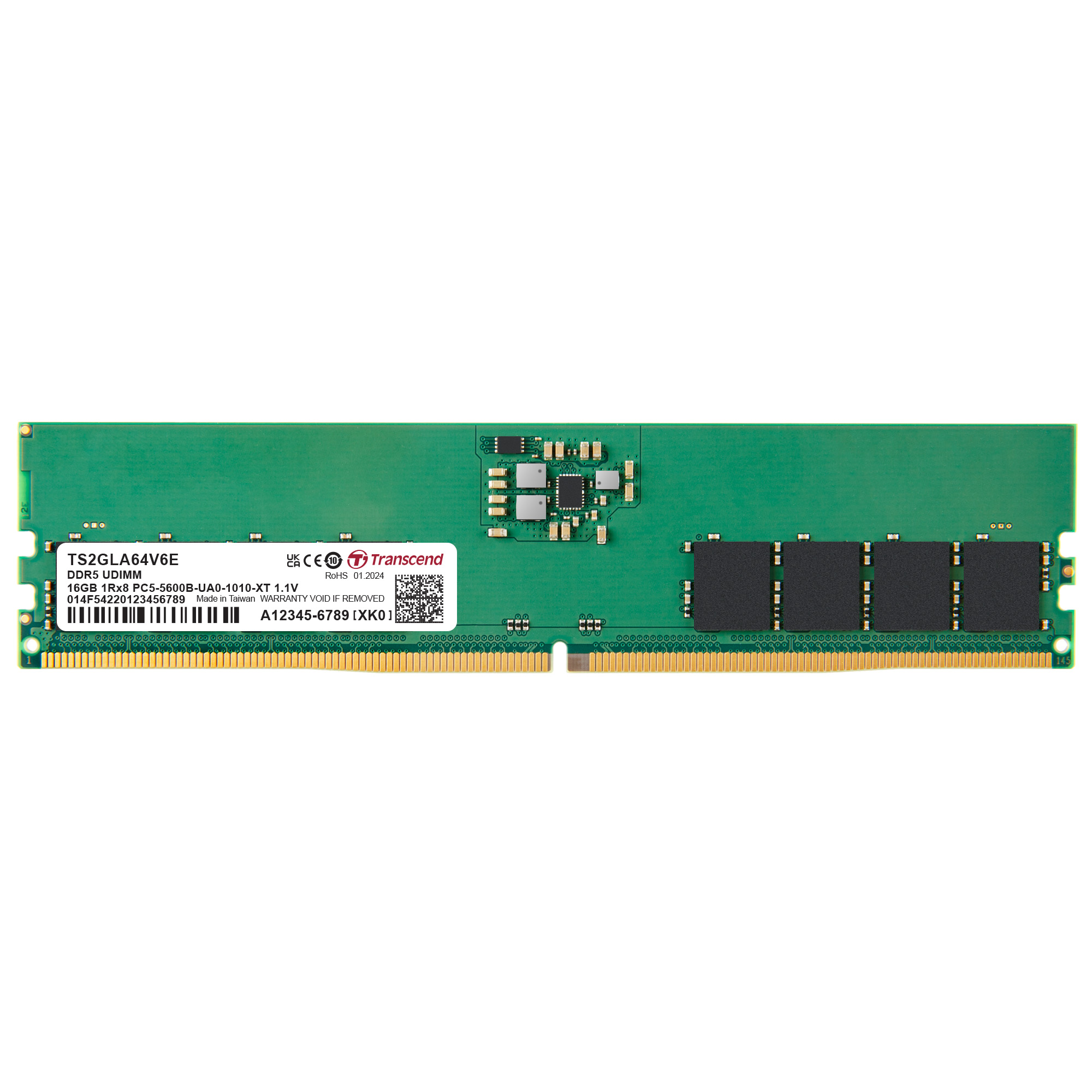 This is 16 GB DDR5 Server RAM 5600Mbit/s UDIMM 1.1V manufactured by Transcend. The manufacturer part number is TS2GLA64V6E. The module has the capacity of 16 gb. It includes a/an udimm memory socket . Additionally, it has a standard ddr5 class memory . It is for a server . It carries a 1.1v of voltage. It has a robust speed of 5600mbit/s.