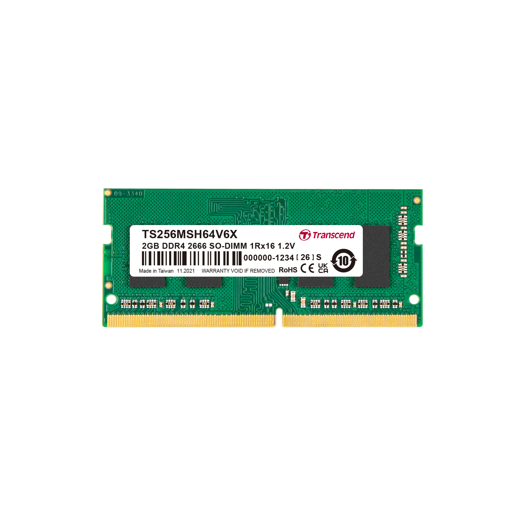 This is 2 GB DDR4 Desktop Laptop RAM 2666Mbit/s SODIMM 1.2V manufactured by Transcend. The manufacturer part number is TS256MSH64V6X. The module has the capacity of 2 gb. It includes a/an sodimm memory socket . Additionally, it has a standard ddr4 class memory . It is for a desktop, laptop . It carries a 1.2v of voltage. It has a robust speed of 2666mbit/s.