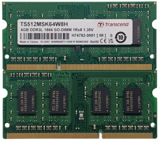 This is 4GB DDR3L 1866 SO-DIMM 1Rx8 512Mx8 CL13 manufactured by Transcend. The manufacturer part number is TS512MSK64W8H. It has 13 CAS latency . Additionally, it has a standard ddr3l class memory . It has a sodimm type memory socket . It holds a typical memory size of 4gb. Features 1.35 v supply voltage. ram is a versatile product designed to provide user-defined applications.