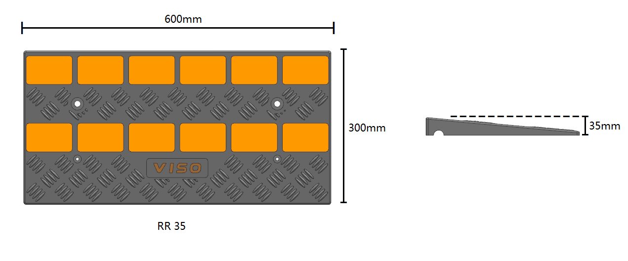 This is Rubber Ramp 50000kg Maximum Weight manufactured by Viso. The manufacturer part number is RR35. It has a foldable nature no . It has 50000kg weight capacity . The product is made from highly stable and reliable rubber. In addition, the height is 35mm. Its accurate length is 600mm. The product is highly suitable for sidewalk.