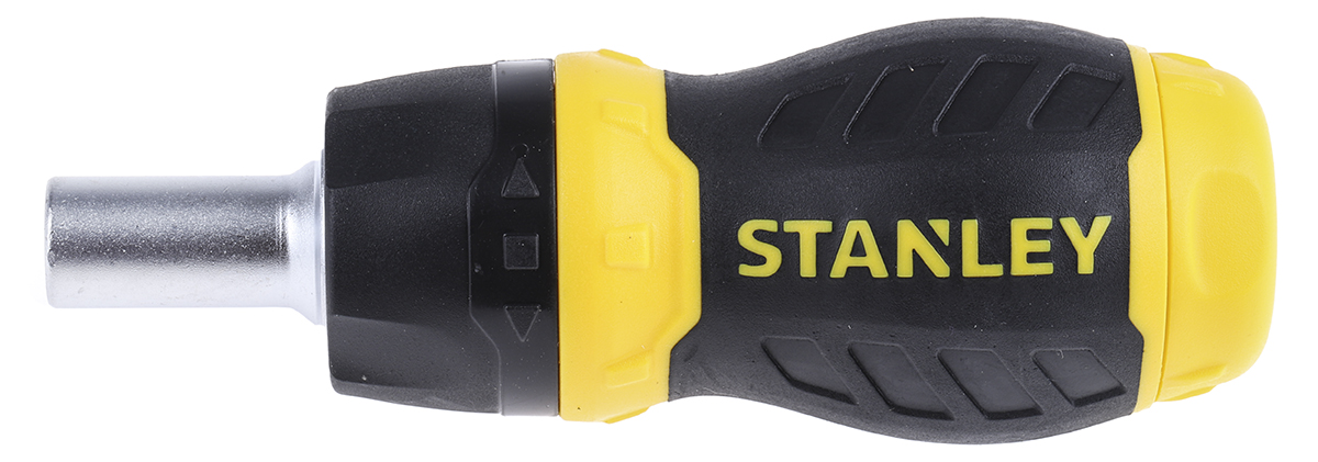 This is Ratchet Screwdriver manufactured by Stanley. The manufacturer part number is 0-66-358. The tip is ph1, ph2, pz1, pz2, sl4.5, sl6 in size. The product features a hexagon drive. Its comfortable handle is manufactured from durable bi-material material. The product has a drive size of 1/4 in. The built-in exquisite tip is a phillips, pozidriv, slotted tip. The product consists of 7 pieces.
