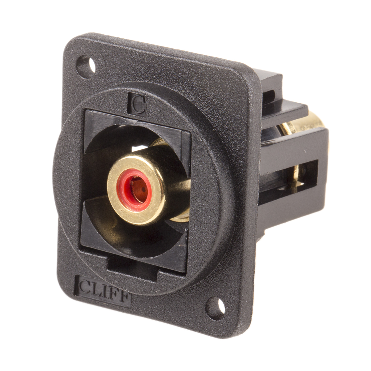 This is Black Panel Mount RCA Socket manufactured by RS Pro. The manufacturer part number is 898-7615. The product is available in panel mount configuration. In addition, female is the available "Gender" of the product. It has a decent black colour. It allows feed through termination method. It has straight body orientation.