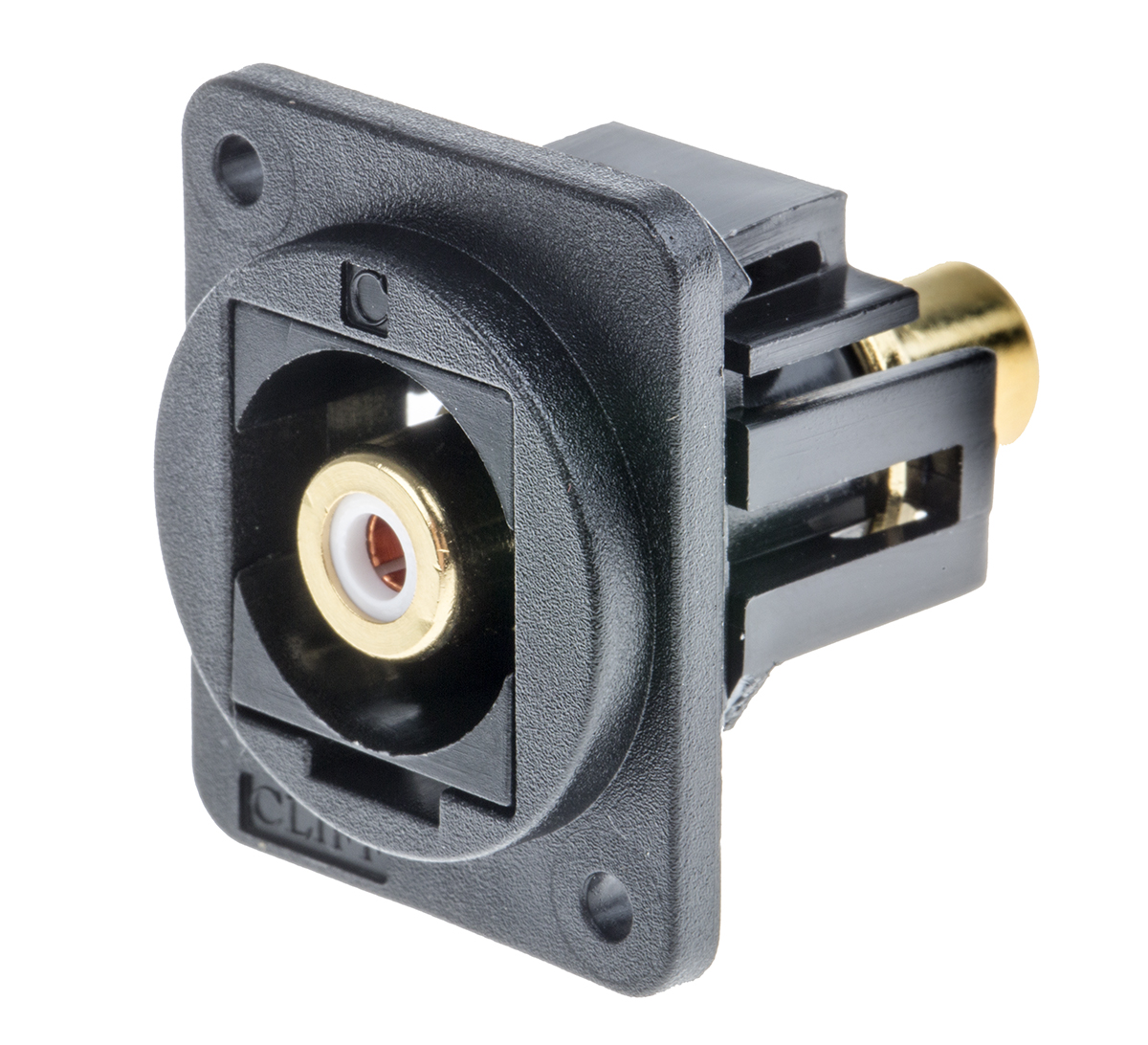 This is Black Panel Mount RCA Socket manufactured by RS Pro. The manufacturer part number is 898-7627. The product is available in panel mount configuration. In addition, female is the available "Gender" of the product. It has a decent black colour. It allows feed through termination method. It has straight body orientation.