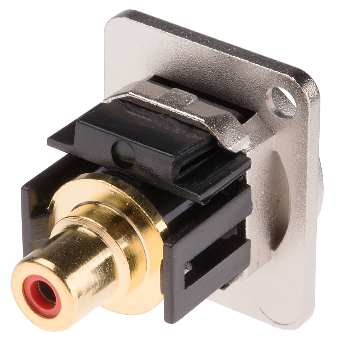 This is Red Panel Mount RCA Socket manufactured by RS Pro. The manufacturer part number is 907-5662. The product is available in panel mount configuration. In addition, female is the available "Gender" of the product. It has a decent red colour. The product also features robust metal housing material. It allows feed through termination method. It has straight body orientation. The product is made from sturdy metal materials.
