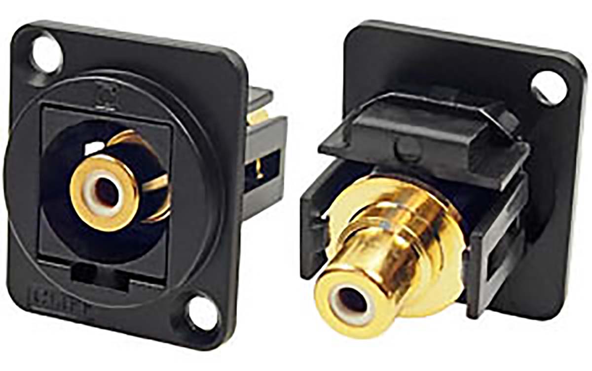 This is Black Panel Mount RCA Socket Gold over Nickel 2A manufactured by RS PRO. The manufacturer part number is 203-5603. The product has a current rating of 2a. The product is available in panel mount configuration. In addition, female is the available "Gender" of the product. It has a decent white colour. The high-quality gold over nickel is used as contact plating material. It has straight body orientation.