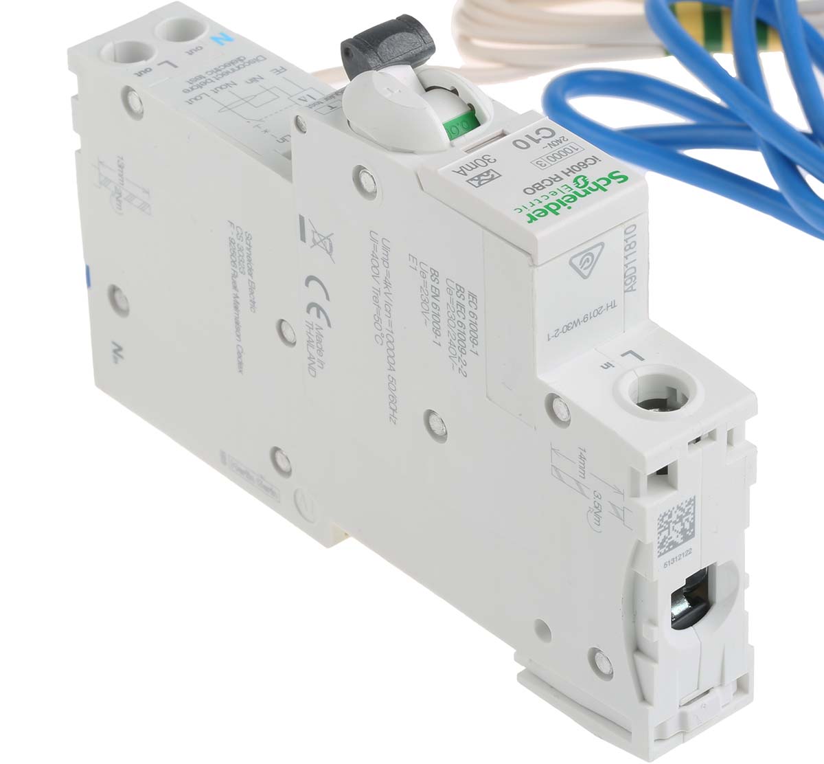 This is 1P+N 10 A RCBO DIN Rail Mount Trip Sensitivity 30mA Acti 9 iC60H manufactured by Schneider Electric. The manufacturer part number is A9D11810. The product has type a earth leakage protection type . Better World Verification Options - green premium. Is it a better world product? yes. The product has a current rating of 10a. The product complies with all safety standards, such as iec. This is a type of rcbo, a circuit breaker with unique features. Allows up to 30ma trip sensitivity. The product ic60h, is a highly preferred choice for users. It has an overall width of 18mm. Furthermore, the product has an overall dimensions of 110 x 18 x 77.5mm. The product has 10 ka breaking capacity at maximum voltage rating. The product is available in din rail mount style. Applications Information involves distribution. It features acti 9 range. The product has a rated AC voltage of 230/240v. The terminal contact is kind of screw clamp. Similarly, the product has 77.5mm of overall depth. It has equipped with 1p+n poles. It utilises thermal-magnetic tripping mechanism.