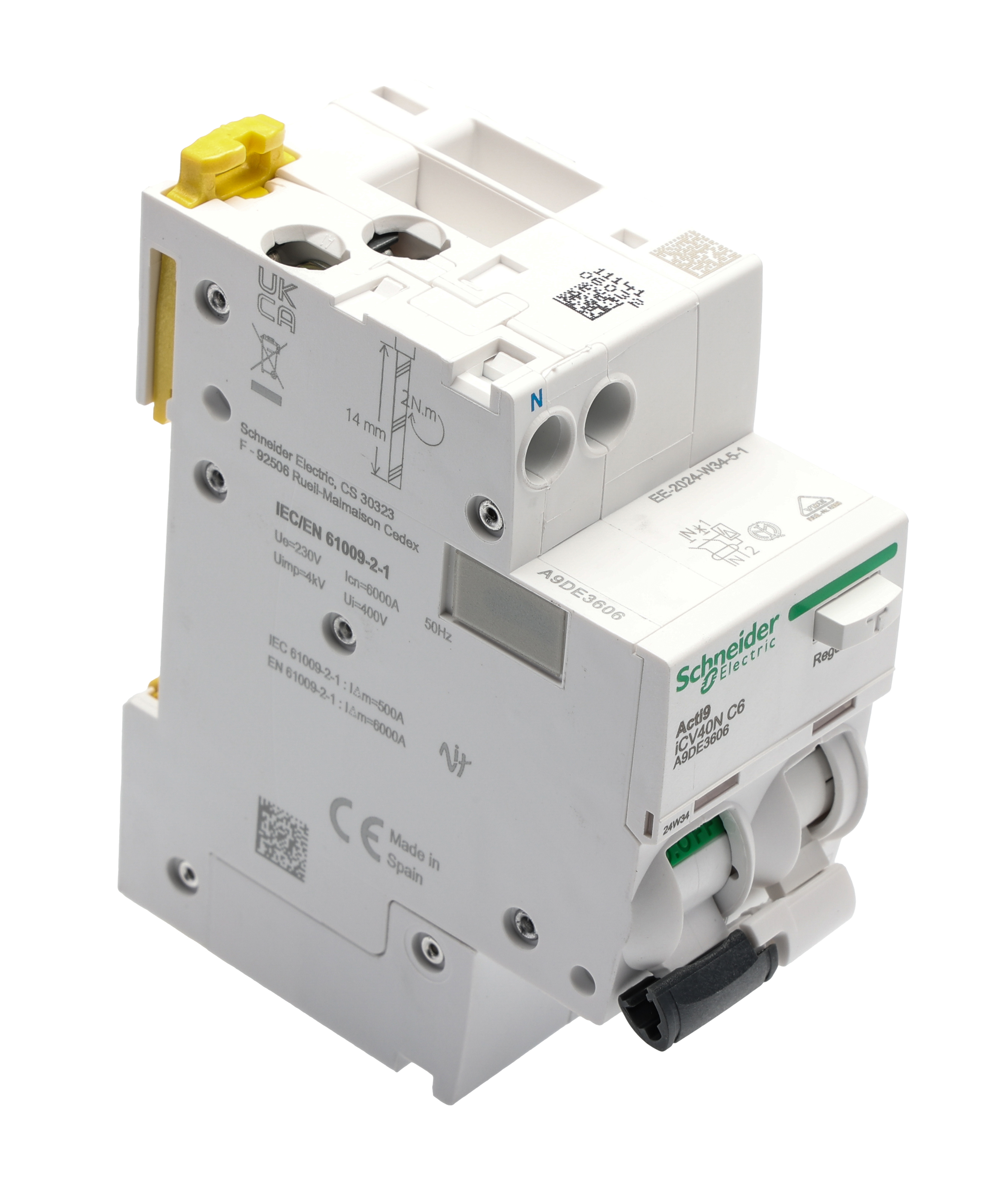 This is RCBO - 1P 6 kA Breaking Capacity 30mA Trip Sensitivity A9 Series manufactured by Schneider Electric. The manufacturer part number is A9DE3606. Better World Verification Options - green premium. Is it a better world product? yes. The product has a current rating of 6a. This is a type of rcbo, a circuit breaker with unique features. Allows up to 30ma trip sensitivity. The product a9, is a highly preferred choice for users. The product is available in din rail mount style. It features acti9 range. The product has 6 ka breaking capacity at maximum voltage rating. It has equipped with 1 poles.
