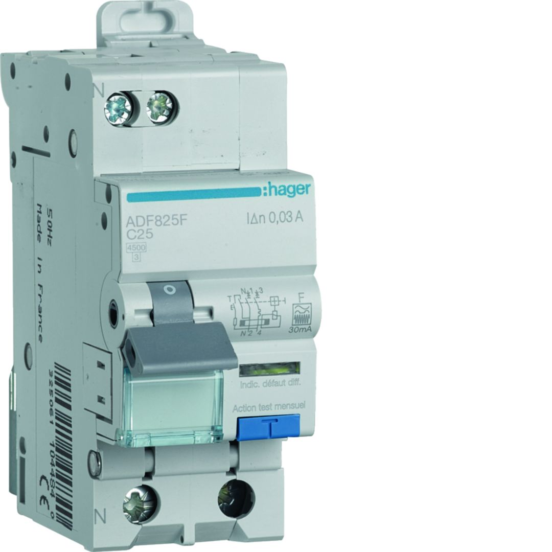 This is RCBO 25A Current Rating 1P+N Poles 30mA Trip Sensitivity Type F manufactured by Hager. The manufacturer part number is ADF825F. The product has a current rating of 25a. This is a type of rcbo, a circuit breaker with unique features. Allows up to 30ma trip sensitivity. The product adf, is a highly preferred choice for users. It allows type f tripping features. It has equipped with 1p+n poles.