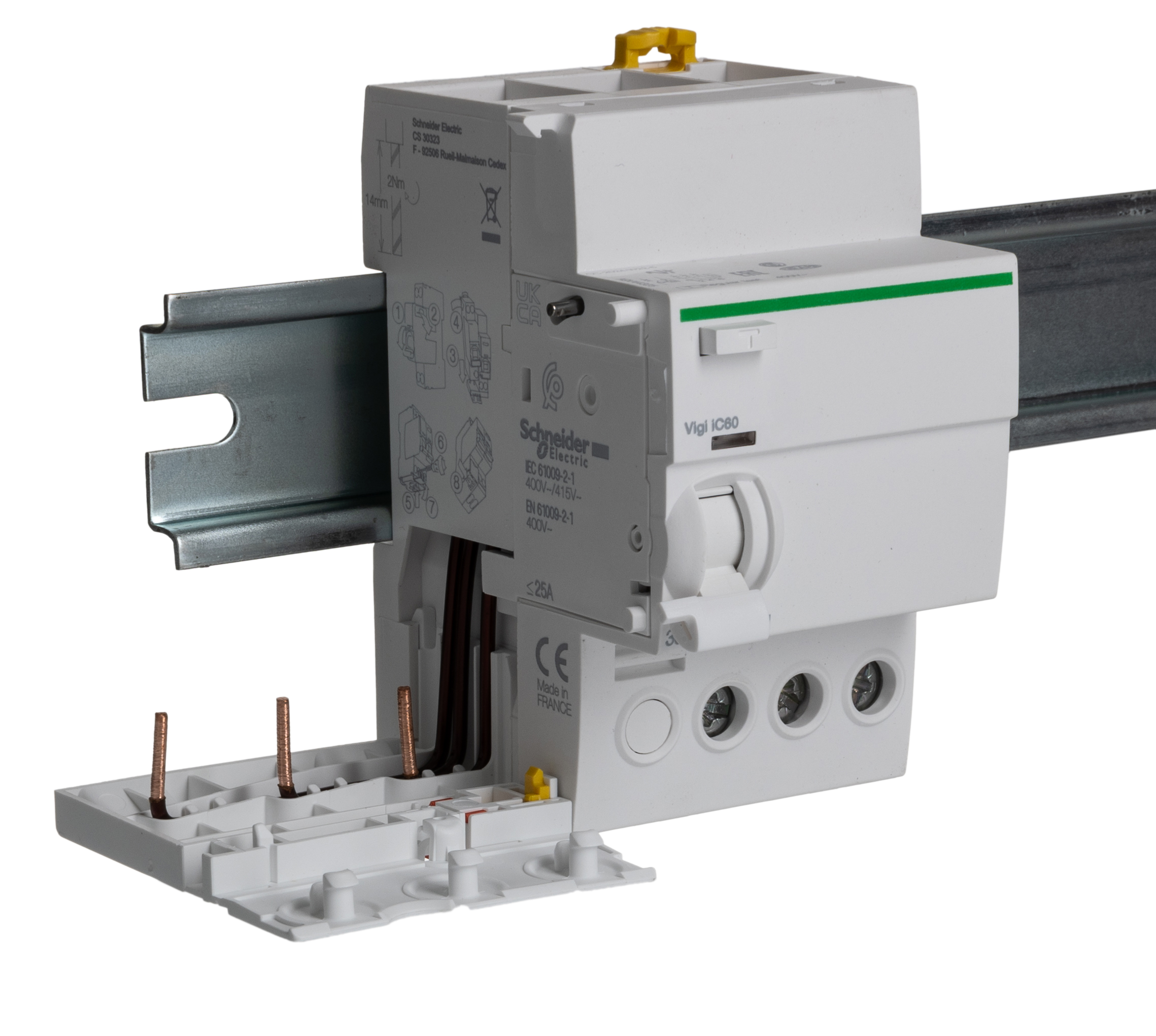 This is 25 A Instantaneous RCD Switch Trip Sensitivity 300mA DIN Rail Mount Acti 9 iC60 manufactured by Schneider Electric. The manufacturer part number is A9V44325. The product has type ac earth leakage protection type . Better World Verification Options - green premium. Is it a better world product? yes. The product has a current rating of 25a. Moreover, the product has a nominal 230 → 415v ac voltage rating. Allows up to 300ma trip sensitivity. The product ic60, is a highly preferred choice for users. It has an overall width of 54mm. This is a type of rcd, a circuit breaker with unique features. Furthermore, the product has an overall dimensions of 54 x 91 x 73.5mm. The product is available in din rail mount style. It features acti9 range. The product has a rated AC voltage of 400v. The terminal contact is kind of tunnel terminal. Similarly, the product has 73.5mm of overall depth. It has equipped with 3 poles. It has a/an instantaneous break time .