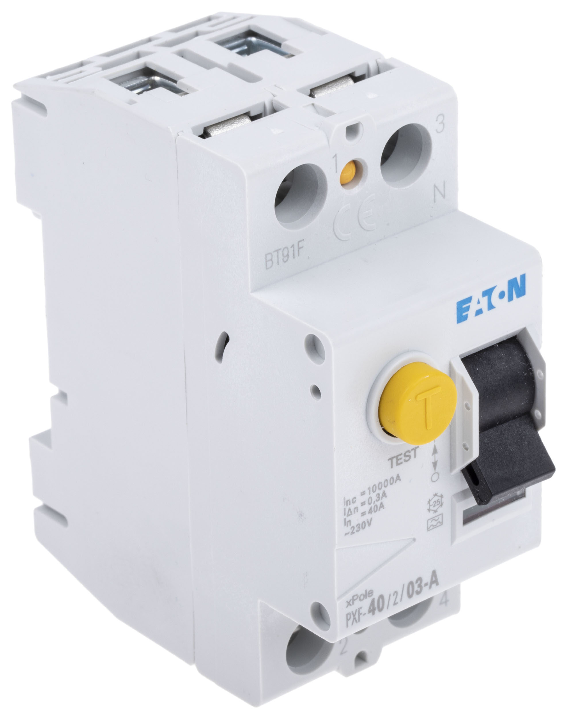 This is 1P+N 40A RCD Switch Trip Sensitivity 300mA Type A DIN Rail Mount manufactured by Eaton. The manufacturer part number is 236750 PXF-40/2/03-A. The product has a current rating of 40a. This is a type of rccb, a circuit breaker with unique features. Allows up to 300ma trip sensitivity. The product pxf-a, is a highly preferred choice for users. It has an overall width of 35mm. The terminal contact is kind of quick connect. It allows type a tripping features. The product is available in din rail mount style. It features pxf range. The product has a rated AC voltage of 230v. The product has 500 a breaking capacity at maximum voltage rating. It has an overall length of 80mm. Similarly, the product has 45mm of overall depth. It has equipped with 1+n poles.