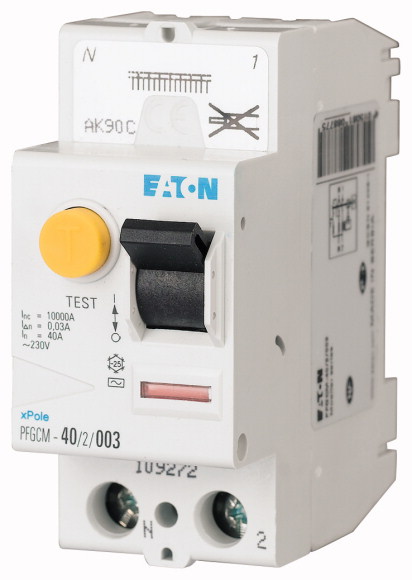 This is 2P Pole Type AC RCCB 40A PFGCM 30mA manufactured by Eaton. The manufacturer part number is 109272 PFGCM-40/2/003. The product has a current rating of 40a. Moreover, the product has a nominal 230v ac voltage rating. Allows up to 30ma trip sensitivity. The product eaton moeller, is a highly preferred choice for users. This is a type of rccb, a circuit breaker with unique features. It allows type ac tripping features. The product is available in din rail mount style. It has equipped with 2 poles.