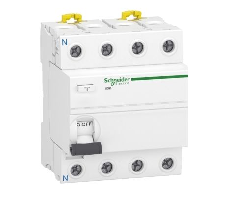 This is 4P Pole Type AC Residual Current Circuit Breaker 25A Acti9 iIDK 30mA manufactured by Schneider Electric. The manufacturer part number is A9R55425. Better World Verification Options - green premium. Is it a better world product? yes. The product has a current rating of 25a. Moreover, the product has a nominal 380 → 415v ac voltage rating. Allows up to 30ma trip sensitivity. The product acti9 iidk, is a highly preferred choice for users. This is a type of rccb, a circuit breaker with unique features. It allows type ac tripping features. The product is available in din rail mount style. It features acti9 range. It has equipped with 4 poles.