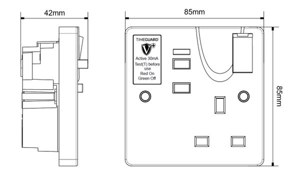 This is RCD Socket manufactured by Timeguard. The manufacturer part number is RCD01WAVN. It is tailored with a/an white colour family . The product has a current rating of 13a. It has a screwed faceplate fixing . It exhibits <40ms trip speed . Moreover, it has a/an rocker style switch . Furthermore, the product is 85mm wide. It has a screwtype faceplate mounting . The product is made from highly stable and reliable thermoset. It has a/an active type RCD . It has a/an white colour shade . Its faceplate depth is approximately 42mm . It has a bs 7288 standard fixing . Moreover, the product has a nominal 230 v ac voltage rating. It has a decent white colour. The product is for outdoor use no . It has a 30ma trip current . Moreover, it has a minimum 25mm box depth . The type g - british socket offers profound benefits and is well-designed. Moreover, it has about 85 x 85 x 42mm dimensions L x W x D . It comprises 1 gangs. In addition, the height is 85mm. The product is available in surface mount style. It includes an earth terminal yes . It has equipped with 1 poles. Quality product with a 1 pole switch type.