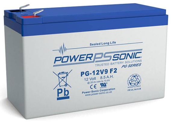 This is Rechargable Sealed Lead Acid Battery - PG Long Life Series manufactured by Powersonic. The manufacturer part number is PG-12V9.