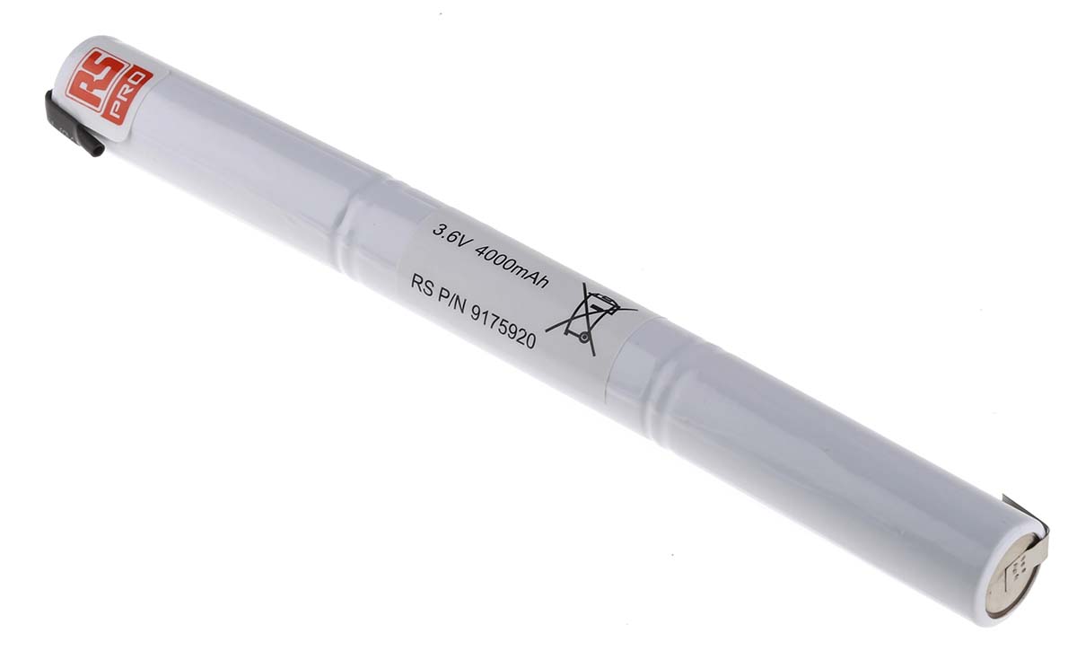 This is 3.6V NiMH Rechargeable Battery Pack 4000mAh manufactured by RS Pro. The manufacturer part number is 917-5920. The module has the capacity of 4ah. The product has -10 → +60°c of operating temperature range. It is comprised of 3 cells. The product is available in 18670 size. The number of supplied batteries is/are 1 . Whereas, the minimum operating temperature of the product is -10°c. The nominal voltage of the product is 3.6v. It has a/an nimh chemistry . It has a maximum operating temperature of +60°c. The terminal is a tags type. Its brand range is rs pro .