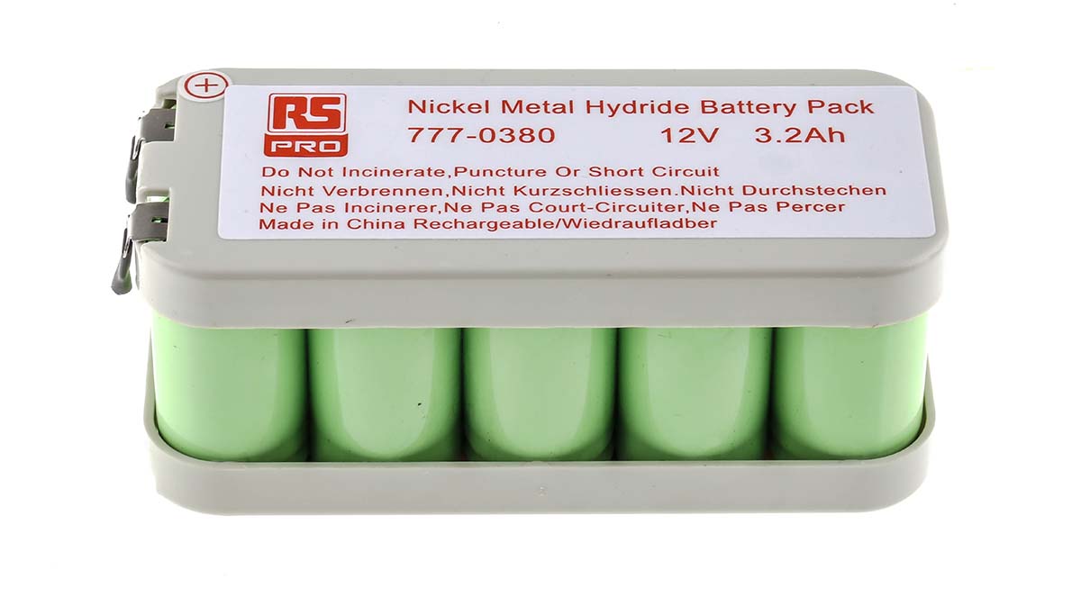 This is 12V NiMH Rechargeable Battery Pack 3200mAh manufactured by RS Pro. The manufacturer part number is 777-0380. The module has the capacity of 3.2ah. The product has -10 → +60°c of operating temperature range. It is comprised of 10 cells. The product is available in cs size. The number of supplied batteries is/are 1 . Whereas, the minimum operating temperature of the product is -10°c. The nominal voltage of the product is 12v. It has a/an nimh chemistry . It has a maximum operating temperature of +60°c. The terminal is a tags type. Its brand range is rs pro .