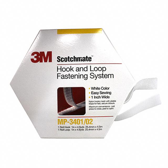 This is manufactured by 3M. The manufacturer part number is MP-3401/02 WHITE. It is assigned with possible HTSUS value of 5806.10.2400. The product is rohs compliant. Furthermore, the product is 1.000" (25.40mm) wide. It comes in hook and loop configuration. The product is made from highly stable and reliable polyamide (pa), nylon. The 3m's product offers user-desired applications. Its typical moisture sensitivity level is not applicable. Its accurate length is 14.70' (4.48m). The product is available in sew on configuration. It has a classic white colour. The product scotchmate™, is a highly preferred choice for users. In addition, roll is the available packaging type of the product. Moreover, it corresponds to mp-3401, a base product number of the product. The product is designated with the ear99 code number.