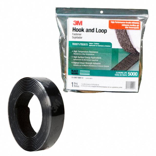 This is manufactured by 3M. The manufacturer part number is TB3571/TB3572. It is assigned with possible HTSUS value of 5806.10.2400. Furthermore, the product is 1.000" (25.40mm) wide. It comes in hook and loop configuration. The product is made from highly stable and reliable nylon. The 3m's product offers user-desired applications. Its typical moisture sensitivity level is not applicable. Its accurate length is 10.00' (3.05m). It has a long 4 weeks standard lead time. The product is available in adhesive, acrylic configuration. It has a classic black colour. In addition, bulk is the available packaging type of the product. Moreover, it corresponds to tb3571, a base product number of the product. The product is designated with the ear99 code number.