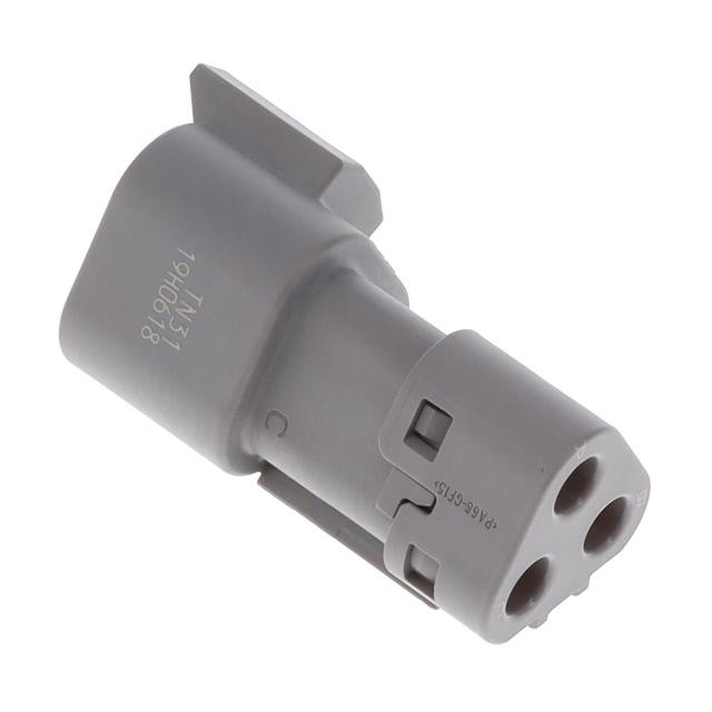 This is manufactured by TE Connectivity Deutsch Connectors. The manufacturer part number is DT04-3P-TN31. It is assigned with possible HTSUS value of 8536.69.8000. The product is rohs3 compliant. Note: contacts not included. The product has -55°c ~ 125°c operating temperature range. The product carries possible position value of 3. In addition, it is reach unaffected. It comes in 2 of rows. receptacle Connector type offer robust functionality. Its typical moisture sensitivity level is not applicable. Furthermore, latch holder is the Fastening Type of the product. It has a long 18 weeks standard lead time. The splendid features of the product include cap (cover), ip68, ip6k9k, reduced wire seals, sealed gasket. The product is available in free hanging (in-line) configuration. It has a classic gray colour. The product dt, is a highly preferred choice for users. In addition, box is the available packaging type of the product. It has a robust polyamide (pa66), nylon 6/6, glass filled insulation material. It has typical contact type of male pin. It also incorporates crimp contact terminals. Moreover, it corresponds to dt04, a base product number of the product. The product is designated with the ear99 code number.