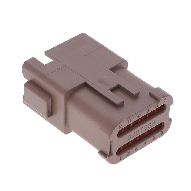 This is manufactured by TE Connectivity Deutsch Connectors. The manufacturer part number is DT04-12PD-BE02. It is assigned with possible HTSUS value of 8538.90.6000. The product is rohs3 compliant. The product has -55°c ~ 125°c operating temperature range. The product carries possible position value of 12. In addition, it is reach unaffected. It comes in 2 of rows. It is shipped in box package . receptacle Connector type offer robust functionality. Its typical moisture sensitivity level is not applicable. It has typical contact type of male pin. Furthermore, latch holder is the Fastening Type of the product. It has a long 16 weeks standard lead time. The splendid features of the product include sealed. The product is available in free hanging (in-line) configuration. It has a classic brown colour. The product dt, is a highly preferred choice for users. Moreover, the product is 0.359" (9.12mm). The space between it rows includes 0.175" (4.45mm). It also incorporates crimp contact terminals. It has a robust polyamide (pa), nylon, glass filled insulation material. The product is designated with the ear99 code number.