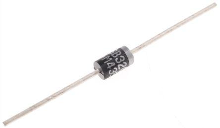 This is Schottky Diode 200V 3A 2-Pin DO-201AD manufactured by Vishay. The manufacturer part number is VSB3200-M3/54. Its diameter is 3.6mm. The product is available in through hole configuration. Furthermore, its maximum continuous forward current constitutes 3a. Moreover, a bespoke product has 50a peak non-repetitive forward surge current. It features 1.4v of maximum forward voltage drop. The product utilizes schottky diode technology. The package is a sort of do-201ad. It consists of 1 elements per chip. It is designed with a schottky diode. The diode features a single configuration. It contains 2 pins. While having the peak reverse repetitive 200v.
