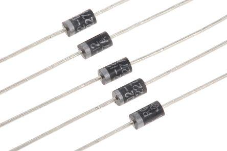 This is Switching Diode 1200V 500mA 300ns 2-Pin DO-204AL manufactured by Vishay. The manufacturer part number is RGP02-12E-E3. The given dimensions of the product include 2.7 x 5.2 x 2.7mm. This switching product is highly suited for various professionals in various settings. The diode features a single configuration. Moreover, it has a peak reverse recovery time about 300ns . Furthermore, its maximum continuous forward current constitutes 500ma. The package is a sort of do-204al. It consists of 1 elements per chip. It has a maximum operating temperature of +175 °c. Its accurate length is 5.2mm. It contains 2 pins. Furthermore, the product is 2.7mm wide. The product is available in through hole configuration. The product utilizes silicon junction diode technology. Moreover, a bespoke product has 20a peak non-repetitive forward surge current. It features 1.8v of maximum forward voltage drop. In addition, the height is 2.7mm. It has a typical 5µa peak reverse current . While having the peak reverse repetitive 1200v. Whereas, the minimum operating temperature of the product is -65 °c. It is designed with a silicon junction diode.