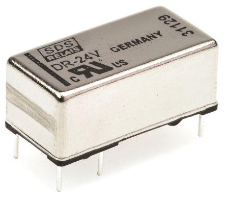This is SPDT Reed Relay 0.3 A @ V ac 1 A @ V dc 24V dc manufactured by Panasonic. The manufacturer part number is DR-SDS-24. While it carries 30v dc of maximum DC switching voltage. It has a maximum operating temperature of +85°c. The given dimensions of the product include 20 x 10 x 8.5mm. The product is available in pcb mount configuration. The product has -50 → +85°c of operating temperature range. Whereas, the minimum operating temperature of the product is -50°c. It has a maximum 0.3 a switching current AC . The coil voltage of the product is 24v dc. Its accurate length is 20mm. In addition, the height is 8.5mm. It has a minimum 1 a DC switching current . The product comes in 10mm depth. It has a maximum AC switching voltage of 110v ac. It bears a maximum 20 w of DC switching power. The contact is equipped with spdt configuration. It also features an AC switching power of 33 va. The product is made from sturdy gold plated materials. It has equipped with 5 poles. The terminal is a pcb pin type. It holds up to 4.37 kω coil resistance.